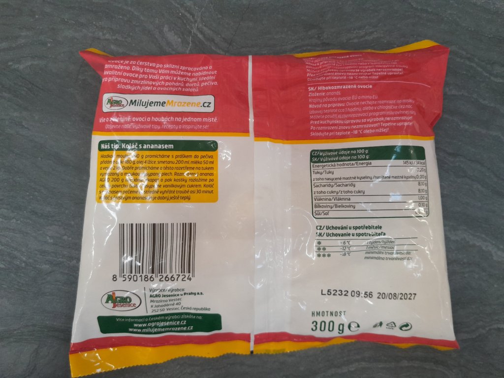 Ananas mražený 300 gramů.